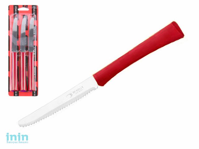 Набор ножей столовых, 3шт., серия INOVA D+, красные, DI SOLLE (Длина: 217 мм, длина лезвия: 101 мм, толщина: 0,8 мм. Прочная пластиковая ручка.)