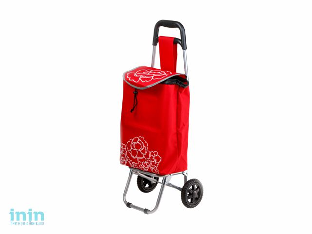 Сумка-тележка хозяйственная на колесах 20 кг, красная, цветок, PERFECTO LINEA