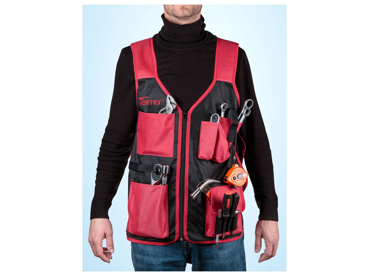 Жилет монтажника WORTEX GR 5060 используется для переноски и хранения строительного инструмента. Также оснащен 5 карманами и 4 дополнительными отсеками для переноски мелкогабаритного инструмента. Изготовлен из высокопрочного нейлона.Комплект поставки: