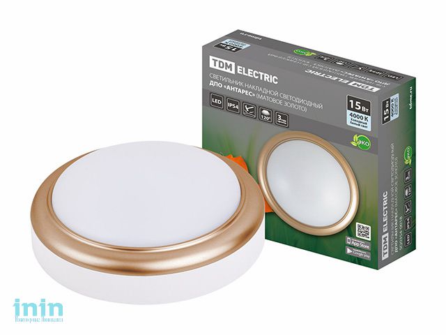 Светильник накладной LED ДПО "Антарес" 15Вт 4000К круг 180*66 мм мат.золото IP54 TDM
