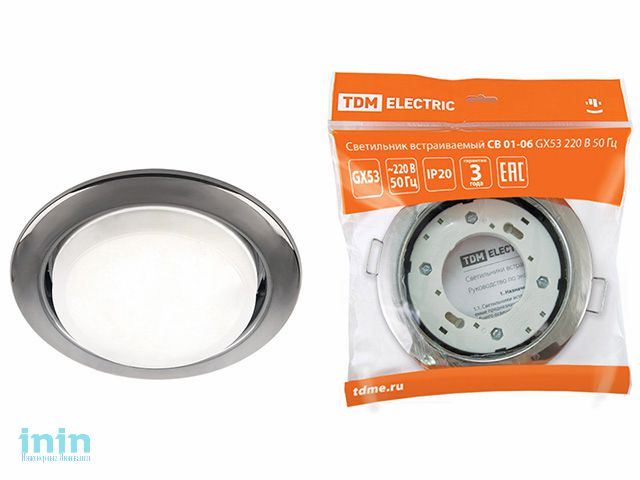 Светильник встраиваемый СВ 01-06 GX53 220 В 50 Гц чёрный хром TDM