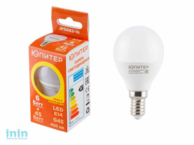 Аналог лампы накаливания: 45Вт;