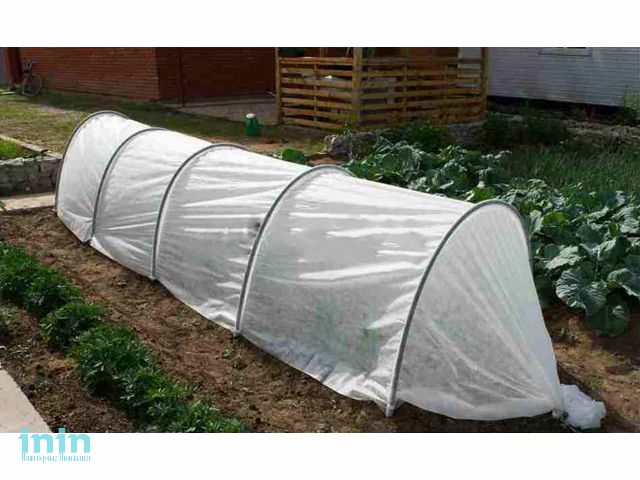 Дуги парника закреплены в укрывной материал в прошитую петлю размером  5 х 5 см. В комплекте 2 зажима, которые используются при прополке, поливе и проветрисвпании.