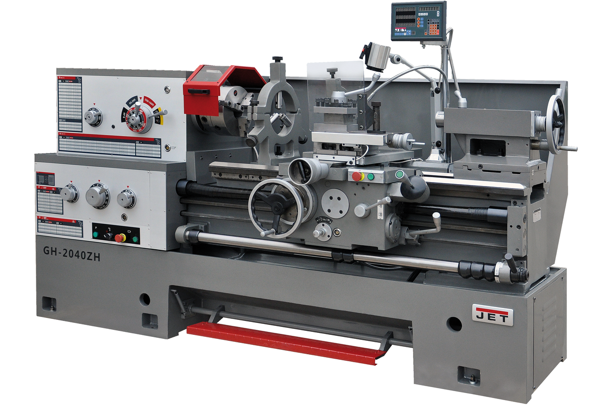 Универсальный токарно-винторезный станок GH-2040ZH DRO производства компании JET ориентирован на тех заказчиков, кто предъявляет особые требования к точности, скорости и качеству металлообработки. Станок предназначен для обточки деталей диаметром до 500 мм над суппортом, до 720 мм со съемным мостиком и до 310 над поперечным суппортом. Расстояние между центрами – 1015 мм, предусмотрено ускоренное перемещение суппорта. На GH-2040 ZH DRO устанавливается мощный асинхронный двигатель на 380 В, скорость вращения шпинделя от 9 до 1600 об/мин, переключение скоростей ступенчатое: всего 24 ступени.