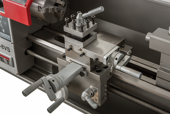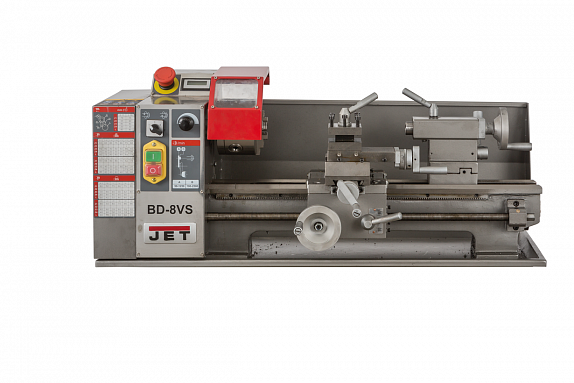 Станок JET BD-8VS – относится к классу настольных токарных станков. Станок поставляется с поддоном для сбора стружки и через поддон прикручивается к тумбе или верстаку. Несмотря на свои маленькие габариты станок способен обрабатывать заготовку диаметром до 210 мм над станиной, а если точить над суппортом, то этот диаметр уменьшается до 135 мм. При этом максимальная длина обработки (РМЦ) составляет внушительные 400 мм.