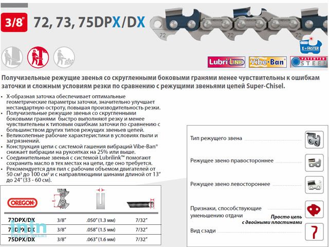 Цепь 37 см 15" 3/8" 1.6 мм 56 зв. 75DPX (в блистере) OREGON (затачиваются напильником 5.5 мм, для проф. интенсивного использования)
