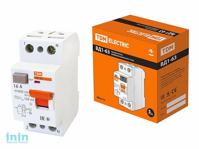 Устройство защитного отключения ВД1-63 2Р 16А 100мА TDM