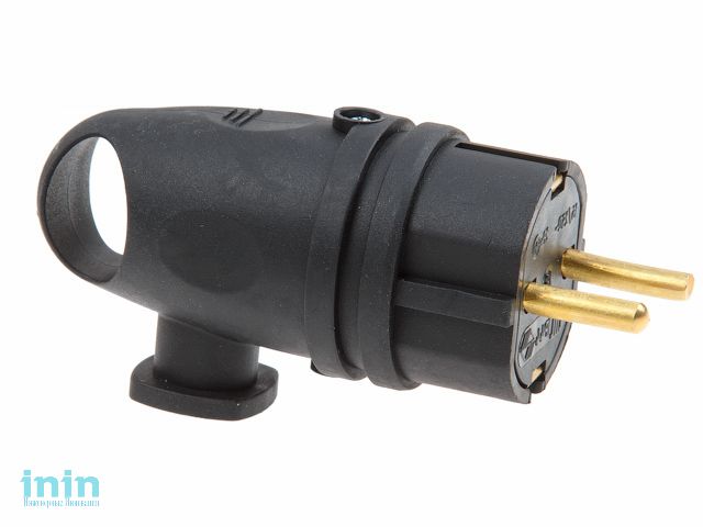 Вилка угловая с ушком каучук (с/з, 16А, 250В) черная, Юпитер (В16-002) (ЮПИТЕР)