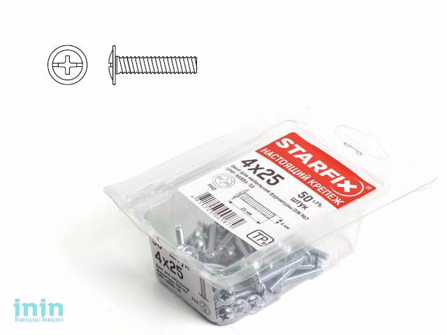 Винт М6х60 мм для мебельной фурнитуры, цинк, кл.пр. 5.8, DIN 967 (40 шт в пласт. конт.) STARFIX
