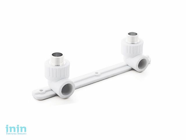 Угольник PP-R Ростурпласт комбинированный двойной с наружной резьбой - используется при монтаже полипропиленовых труб PP-R во многом облегчает монтаж при выполнении различного рода задач и предназначен для изменения направление водомагистрали под большим углом (к примеру, для обвода различных препятствий), а так же используется для присоединения к основной трубе различного сантехнического оборудования. Одно из основных преимуществ-это возможность жесткого крепления к стене и любой другой поверхности. Угольник PP-R комбинированный изготовлен в соответствии с ГОСТ 32415-2013 и может выдерживать давление до 25 бар. Закладные детали выполнены из высококачественной латуни типа ЛС-59-2 с пониженным содержанием свинца.