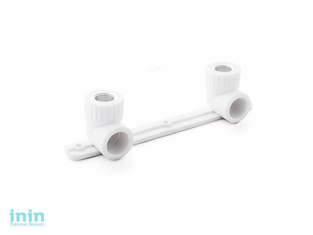 Угольник PP-R Ростурпласт комбинированный двойной с внутренней резьбой - используется при монтаже полипропиленовых труб PP-R во многом облегчает монтаж при выполнении различного рода задач и предназначен для изменения направление водомагистрали под большим углом (к примеру, для обвода различных препятствий), а так же используется для присоединения к основной трубе различного сантехнического оборудования. Одно из основных преимуществ-это возможность жесткого крепления к стене и любой другой поверхности. Угольник PP-R двойной комбинированный с креплением изготовлен в соответствии с ГОСТ 32415-2013 и может выдерживать давление до 25 бар. Закладные детали выполнены из высококачественной латуни типа ЛС-59-2 с пониженным содержанием свинца.