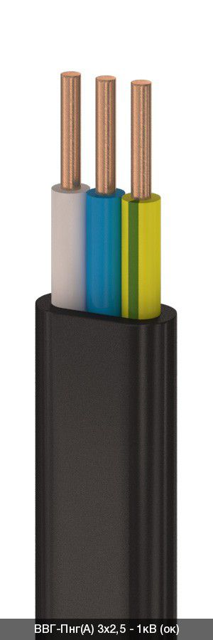 Наряду с обычным ВВГ часто встречаются кабели с буквой «П» в конце маркировки. По техническим характеристикам эти два подвида ни чем не отличается, а вот по строению небольшое отличие есть – он плоский, т.е. ВВГ п расшифровка звучит как: В-винил, В-винил, Г-голый, П-плоский.
