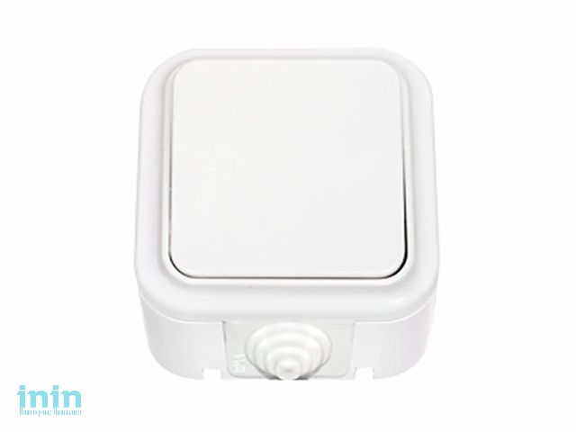 Выключатель 1 клав. (открытый, 10А, брызг. защ.) белый, Пралеска Аква, BYLECTRICA (1-ный брызгозащищенный для управления цепями с двух и более мест от