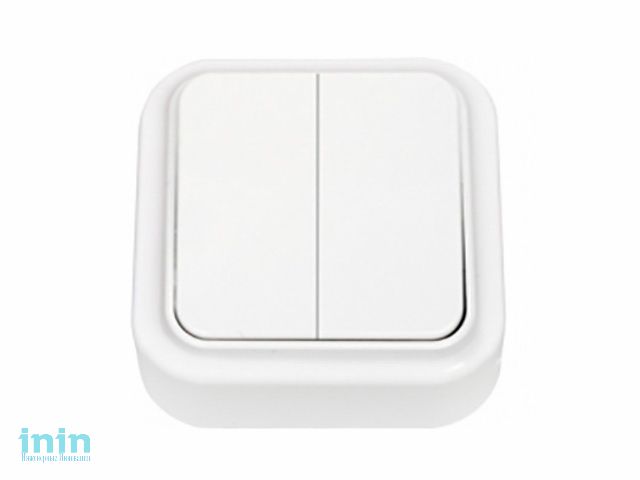 Выключатель 2 клав. (открытый, 6А) белый, Пралеска, Bylectrica (Выключатель двухклавишный открытой установки Гарантийный срок:24 месяца)
