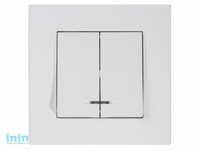 Выключатель 2-клав. (c подсветкой, скрытый, пруж. зажим) белый, RITA, MUTLUSAN (10 A, 250 V, IP 20)