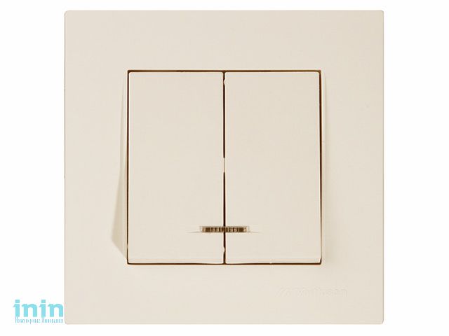 Выключатель 2-клав. (с подсветкой, скрытый, винт. зажим) кремовый, RITA, MUTLUSAN (10 A, 250 V, IP 20)