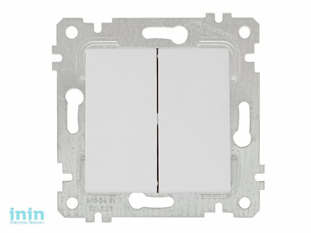 Выключатель 2-клав. (скрытый, без рамки, пруж. зажим) белый, RITA, MUTLUSAN (10 A, 250 V, IP 20)