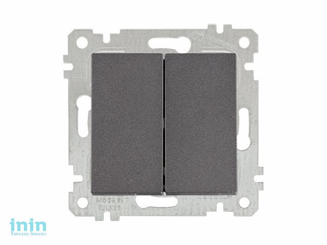 Выключатель 2-клав. (скрытый, без рамки, пруж. зажим) дымчатый, RITA, MUTLUSAN (10 A, 250 V, IP 20)