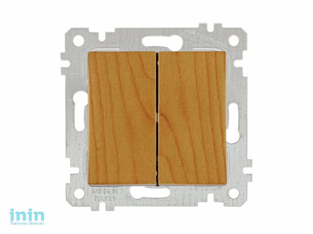 Выключатель 2-клав. (скрытый, без рамки, винт. зажим) дуб, RITA, MUTLUSAN (10 A, 250 V, IP 20)