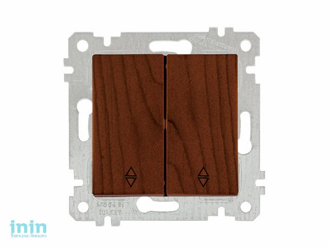 Выключатель проходной 2-клав. (скрытый, без рамки, пруж. зажим) орех, RITA, MUTLUSAN (10 A, 250 V, IP 20)