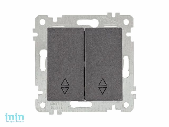 Выключатель проходной 2-клав. (скрытый, без рамки, винт. зажим) дымчатый, RITA, MUTLUSAN (10 A, 250 V, IP 20)