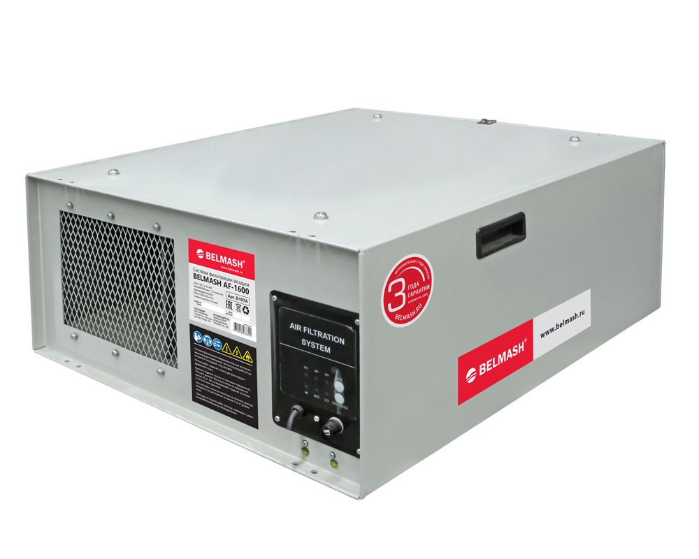 Управлять системой можно напрямую, через блок управления, или с помощью пульта дистанционного управления. Имеется два основных режима: непрерывный и программируемый. Второй используется для очистки помещения в нерабочее время. На пульте таймер можно установить на 1, 2 или 4 часа и выбрать необходимую производительность. По окончании рабочего интервала система отключится самостоятельно.